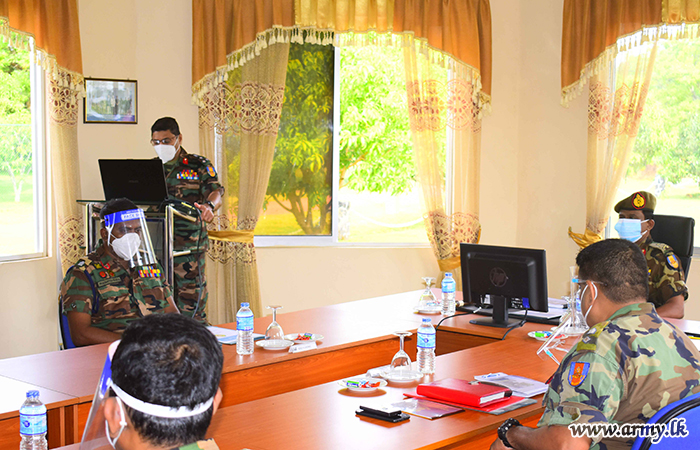 The progress of the ongoing demining project was reviewed by Major General Nihal Amarasekera, Chief Field Engineer and Colonel Commandant of Sri Lanka Engineers, together with demining site Commanders during a recent conference at Boo Oya Field Engineer Brigade HQ, prior to a field visit, undertaken by him and a team of Senior Officers and Commanders to demining sites in the North during 12-13 June 2021.