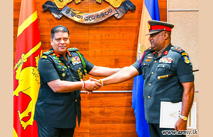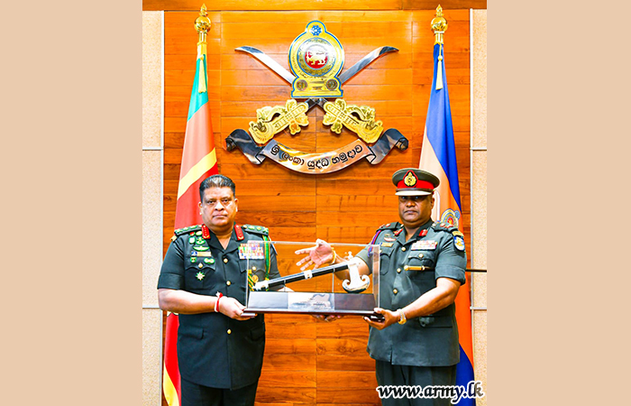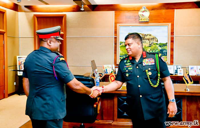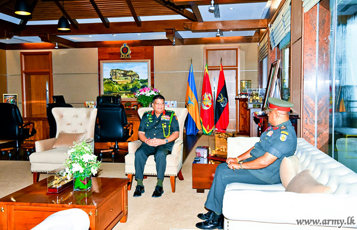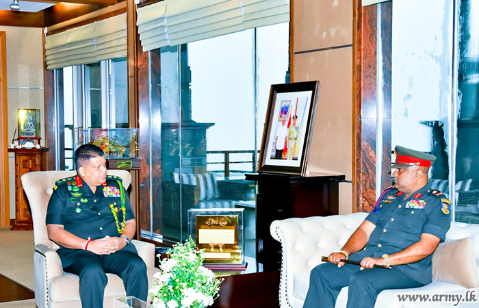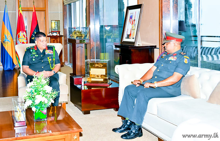 General Shavendra Silva during the brief interaction with the retiring Major General Thilak Weerakoon commended his exemplary service and inquired into his future plans upon retirement. The retiring Senior Officer before being appointed to the Defence HQ complex served a number of key appointments in the Army and the Sri Lanka Artillery in particular.