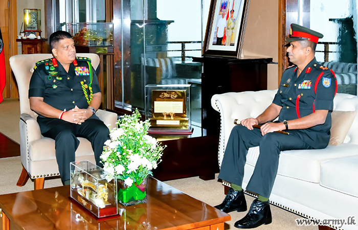 General Shavendra Silva during the brief meeting spoke high of Major General Premalal’s committed contribution to the growth of the role of the SLCMP and also his different roles as Commander, Forward Maintenance Area - Mullaittivu, Commander, Army Logistic Command, etc and inquired into his future endeavours upon retirement. Major General Premalal during his tenure as the Provost Marshal introduced several novel measures for the elevation of professional standards in the Sri Lanka Corps of Military Police (SLCMP) in particular.