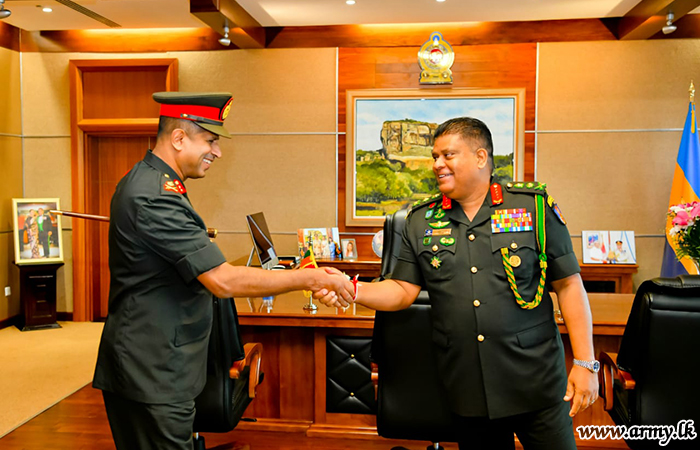Major General Ranjan Premalal, Commander Logistic Command and Colonel Commandant of the Sri Lanka Corps of Military Police (SLCMP) days before his retirement from the Army was invited by the Chief of Defence Staff and Commander of the Army, General Shavendra Silva to his office at the AHQ and heaped praise on his three-decade long service on Monday (26).