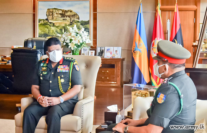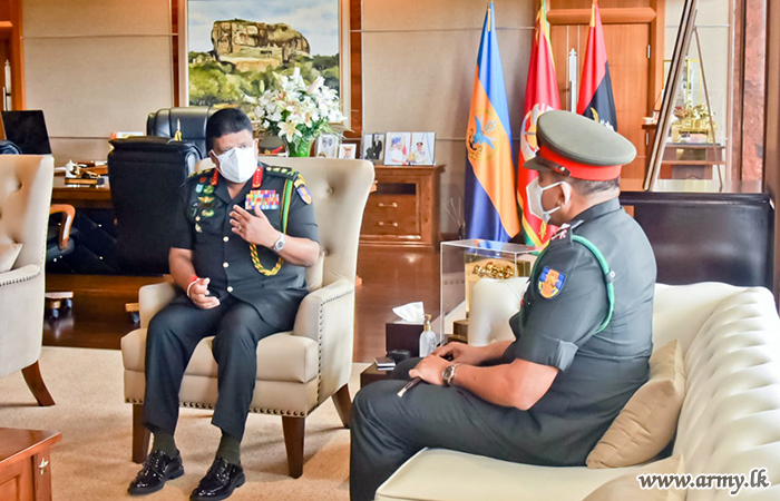 Major General Keerthi Kottawatta, one of the most senior officers of the Gemunu Watch (GW) who has served a number of key appointments in the Army completed more than three decades of dedicated service in the organization on the eve of his retirement was invited to the office of the Chief of Defence Staff and Commander of the Army, General Shavendra Silva this morning (19) at the Army Headquarters in order to receive the Army Chief's appreciative commendations and best wishes.