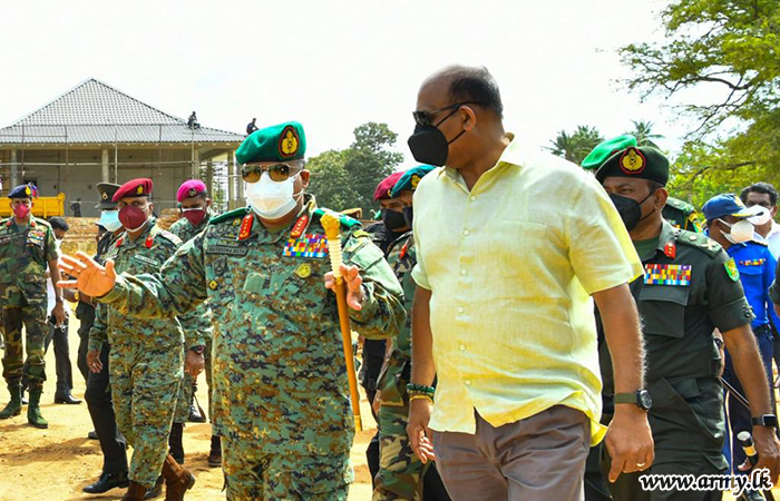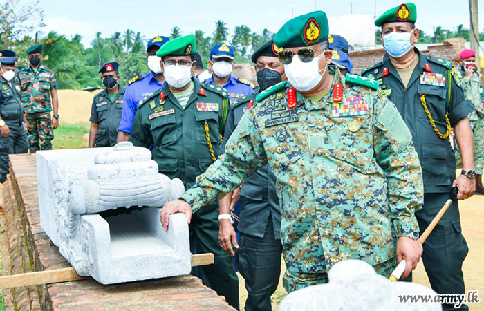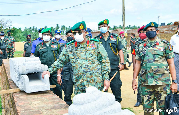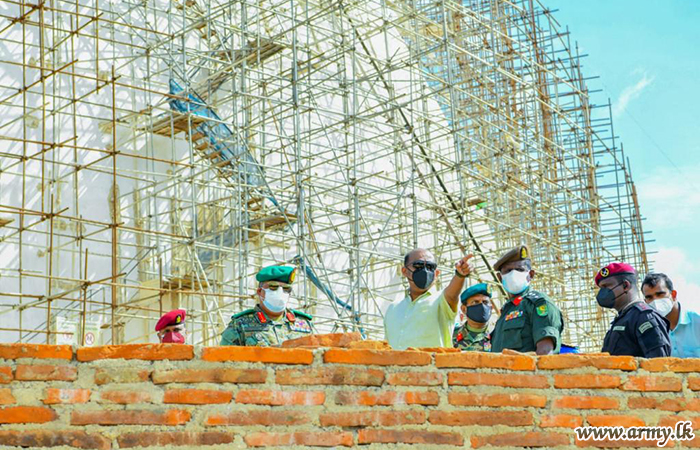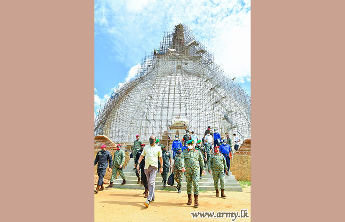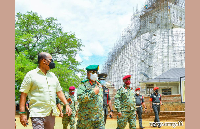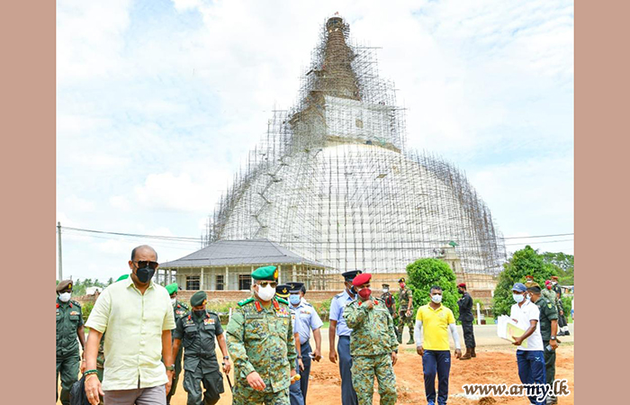 With a view to observing the final touches of the construction of the ‘Sanda Hiru Seya’ pagoda at Anuradhapura, Defence Secretary, General Kamal Gunaratne (Retd), together with General Shavendra Silva, Chief of Defence Staff and Commander of the Army made a visit to the location this morning (29).