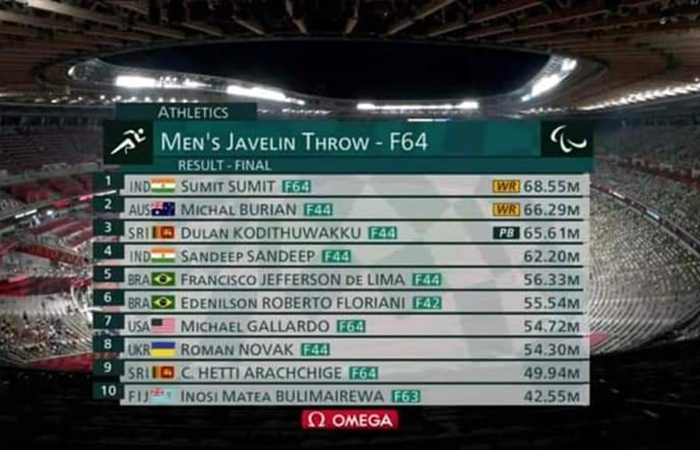 Bringing one more medal to Sri Lanka in the ongoing Paralympic Games 2020 in Tokyo, the Sri Lanka Army Military Police, Corporal Dulan Kodithuwakku, just a couple of hours after Sri Lanka won the first-ever Gold Medal carried away a Bronze Medal in the same Javelin Throw F 64 event on Monday (30).