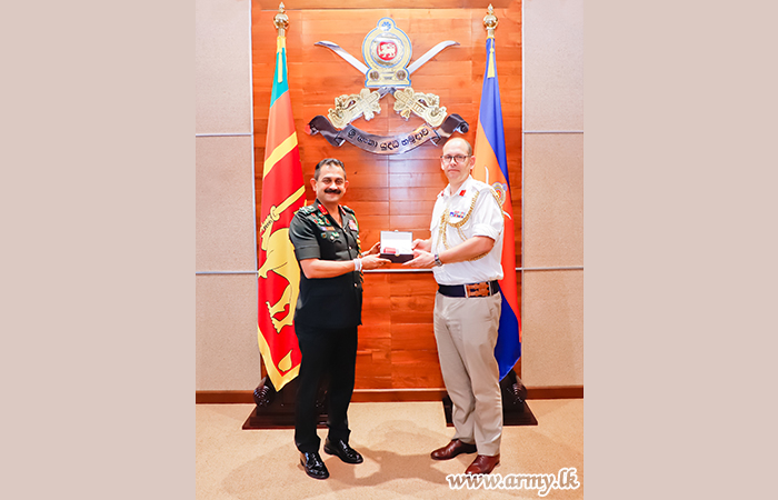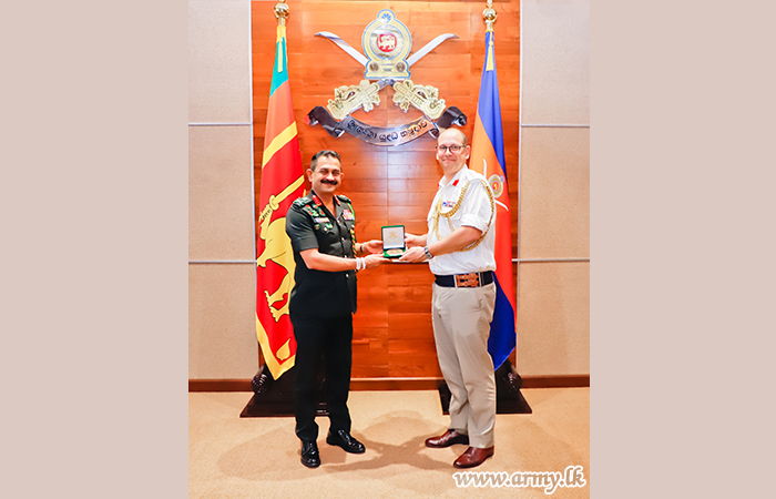 Towards the end of the cordial meeting, Lieutenant General Vikum Liyanage symbolized the goodwill of the Sri Lanka Army by awarding a memento to the British Defence Attache. The gesture was reciprocated.