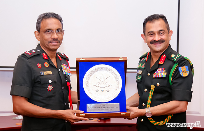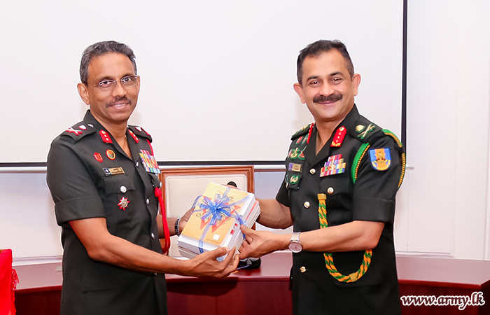 Major General Amal Karunasekara, NDC Commandant warmly welcomed the Army Chief and Commodore W.M.A Bowaththa Senior Directing Staff conducted the introductory speech of day's lecturer to the audience at the NDC. Towards the end of the day’s lecture, the Commander expressed his best wishes to all Student Officers. The commandant NDC awarded a memento to the Commander of the Army which was reciprocated with a memento and a book pack. Prior to his departure, the Chief Guest left a few complimentary remarks in the NDC Visitors' Book.