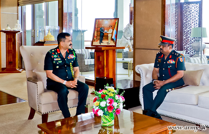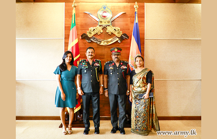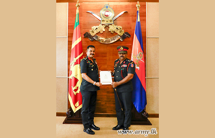 The retiring Major General RADP Ranawaka RWP RSP USP ndc of the Vijayabahu Infantry Regiment (VIR), the Quarter Master General and Colonel Commandant of the Sri Lanka Army Women’s Corps on the eve of his retirement, arrived on invitation at the office of the Commander of the Army, Lieutenant General Vikum Liyanage on Tuesday (4), together with his family members.