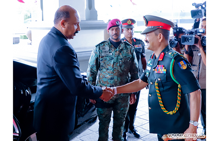 The Chief Guest and the Commander of the Army on arrival at the location were welcomed by Major General SUMN Manage WWV RWP RSP psc, Director General, General Staff, together with Brigadier GWA Senavirathne USP psc, Director Research Concept and Doctrine.