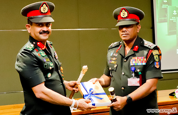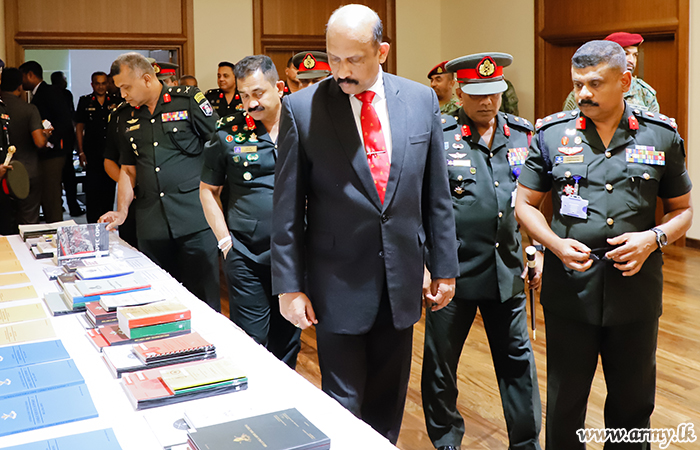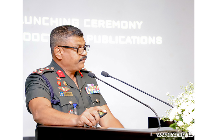 The day's Chief Guest, General G.D. H Kamal Gunaratne (Retd) WWV RWP RSP USP ndc psc MPhil received the first copies of those productions from Lieutenant General Vikum Liyanage RWP RSP ndu, Commander of the Army during this brief ceremony at the Army Headquarters. E-copies of the publications of the Army Keystone Doctrines were also simultaneously launched by the Chief Guest.