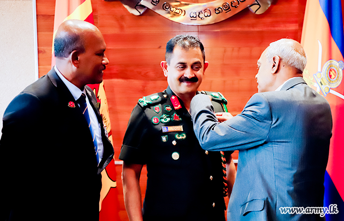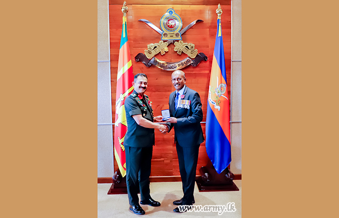 In parallel with the forthcoming Poppy Day (November 11) that recollects memories of all fallen War Heroes in the wars, representatives of the Sri Lanka Ex-Servicemen’s Association (SLESA) pinned a Poppy flower on the Commander of the Army, Lieutenant General Vikum Liyanage this afternoon (19) at the Commander’s office.