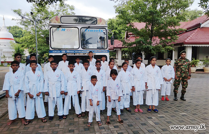 Lieutenant General Vikum Liyanage RWP RSP ndu, Commander of the Army considering the sheer need of those students and their interest in Karate barely 48 hours before the commencement of the Championship in Colombo promptly instructed the ATS Commandant to facilitate their safe travel through an Army bus, accompanied by school authorities and their guardians.