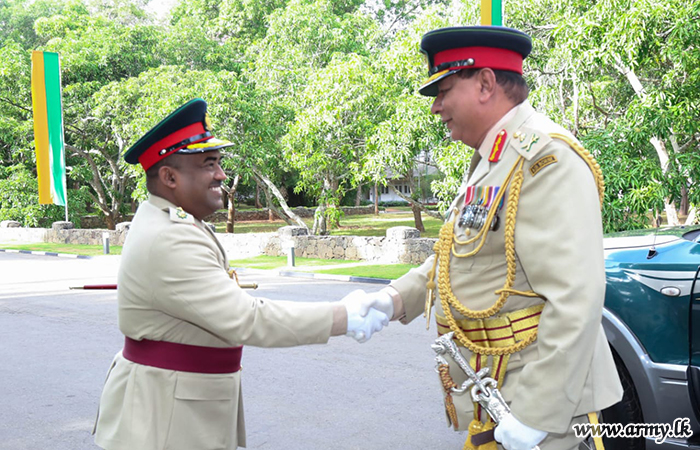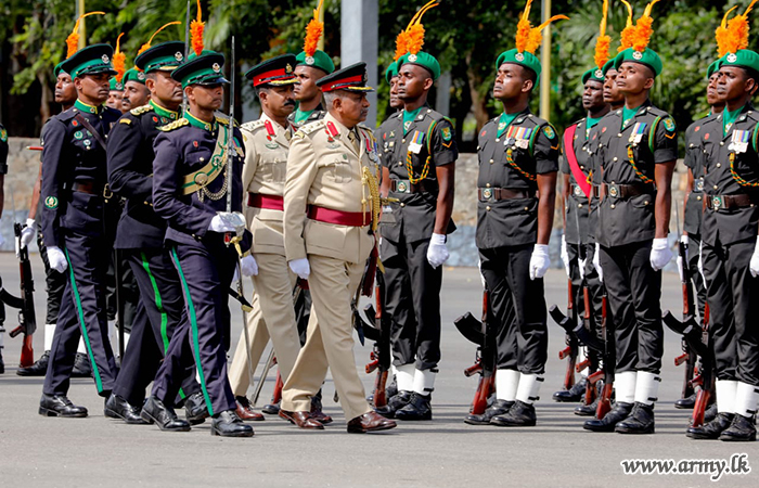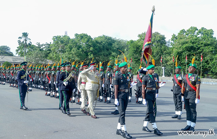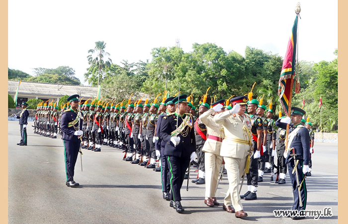 Colonel K.R Kalupahana RSP USP, Deputy Centre Commandant of GR, with several other Senior Officers separately welcomed the Senior Officers on arrival and Brigadier H.T.W Vidyananda RWP RSP USP, Centre Commandant of GR invited them to review the parade with regimental colours and also to receive the salute from the special dais before three of them separately addressed the troops at the parade ground.
