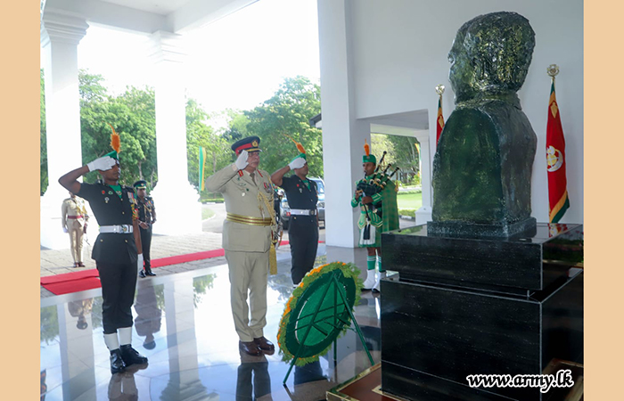 The sequence of events commenced with the ceremonial Guard Turnout, followed by offer of floral tributes to the statue of late Major General Vijaya Wimalaratne, Founding Father of the Gajaba Regiment.