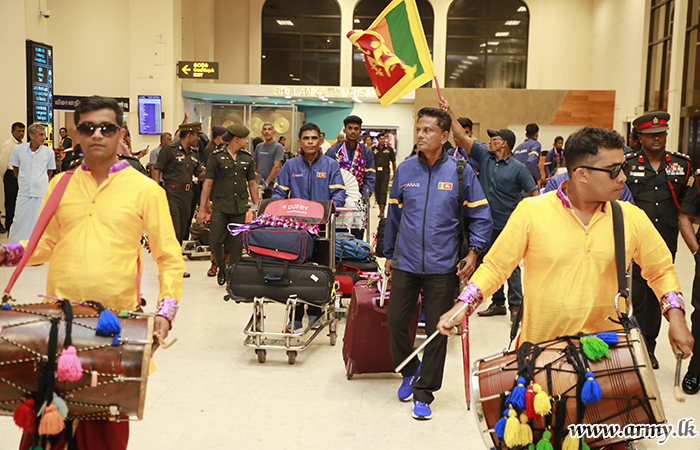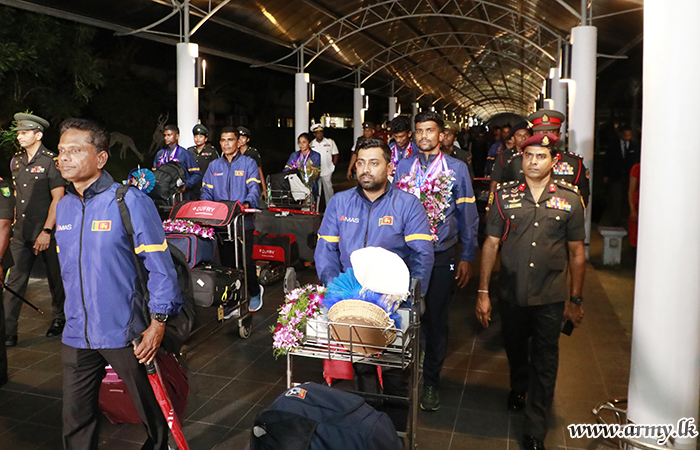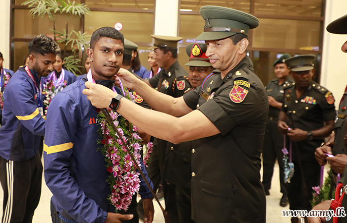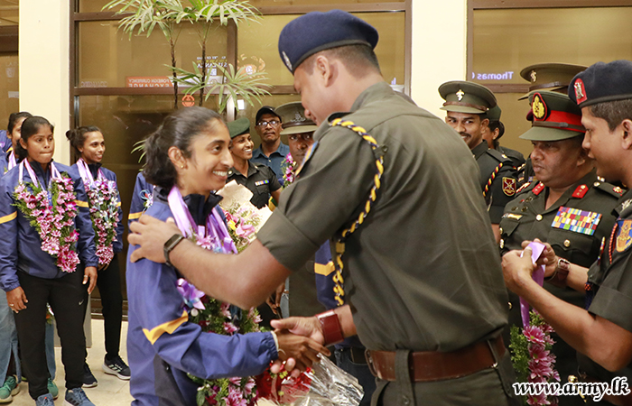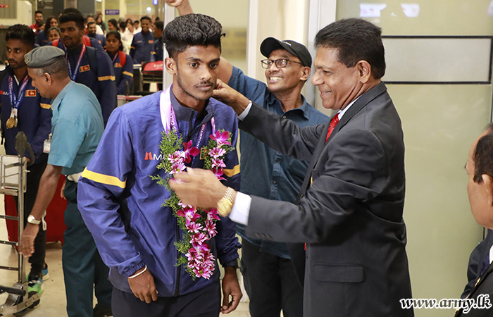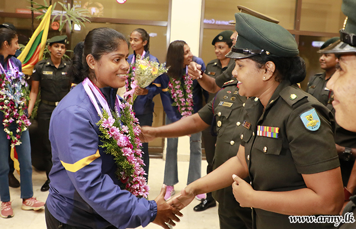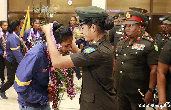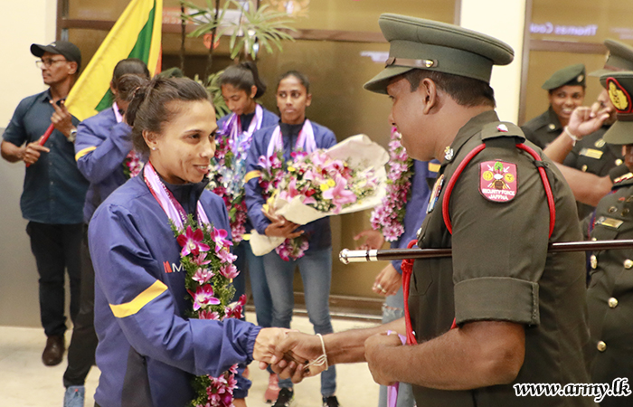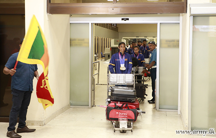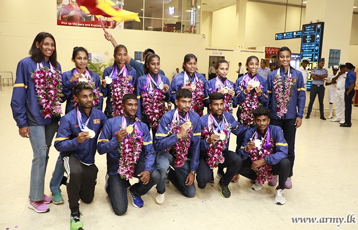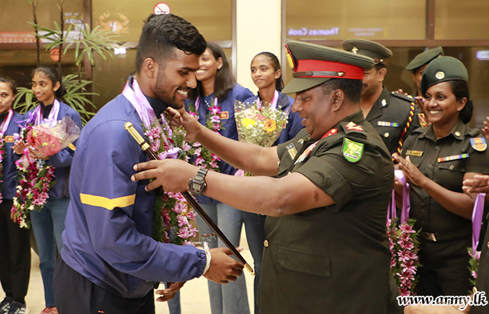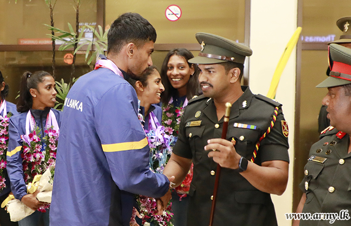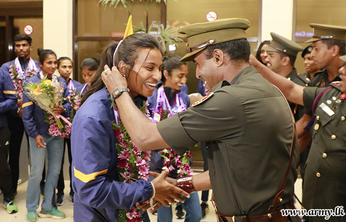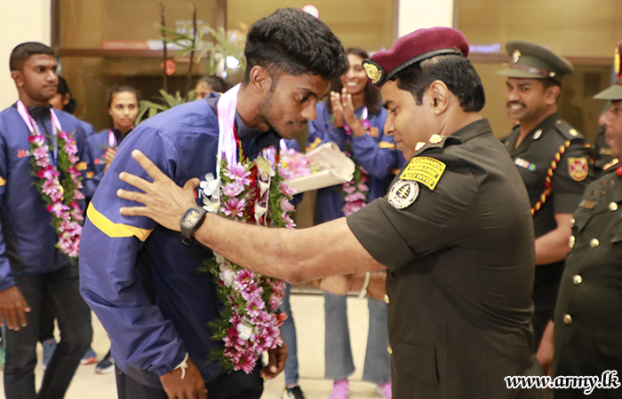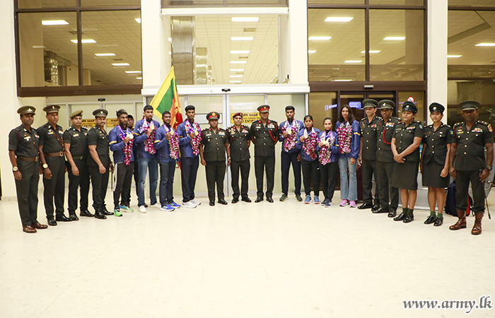 The return of the Sri Lankan team of 13 athletes, inclusive of 8 Army athletes who showcased excellent performance and record breaking sportsmanship in the just-concluded Asian Athletics Championship (AAC) in Bangkok, Thailand on Monday (17 July) evening was warmly welcomed at Colombo Bandaranaike International Airport.