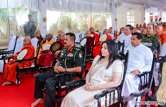A large gathering of monks (Maha Sangha), Mrs Janaki Liyanage, President, Army Seva Vanitha Unit, Brigadier L.G.B Kariyawasam RWP RSP USP, Commander, 141 Infantry Brigade and the laity were present at the ceremony.
