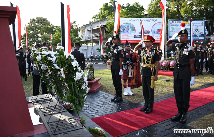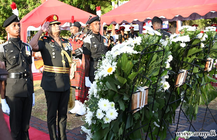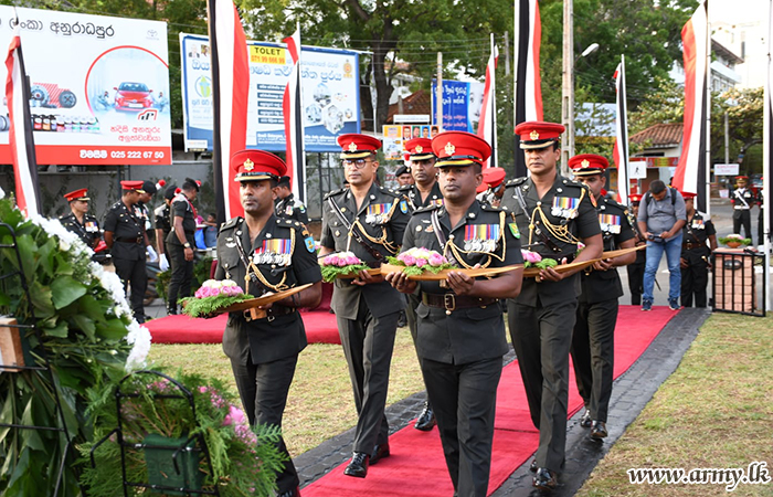 At Anuradhapura, amid solemn beats of the Army band, the day’s Chief Guest laid the first floral wreath and saluted late military veteran's golden memory before the formal military honours were presented. Mrs Laly Kobbekaduwa, family members of fallen Lieutenant General Denzil Kobbekaduwa, retired war veterans, Commander, Security Forces - Wanni, Commander, Security Forces - Central, Senior Officers, Officers of the late veteran's own Sri Lanka Armoured Corps Regiment, family members of fallen War Heroes at Araly Point, grateful civilians and Other Ranks joined the commemorative ceremony in the heart of Anuradhapura.