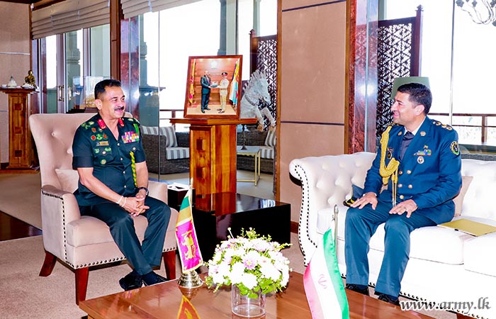 The Military Attaché at the Embassy of the Islamic Republic of Iran in Colombo, Colonel Homaoun Ali Yari paid a courtesy visit to the Commander of the Army, Lieutenant General Vikum Liyanage RWP RSP ndu on Tuesday (15 Aug) at the Army Headquarters.
