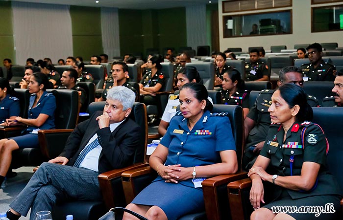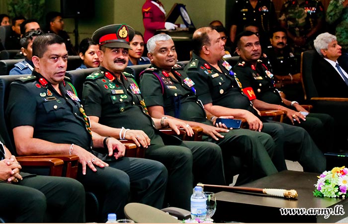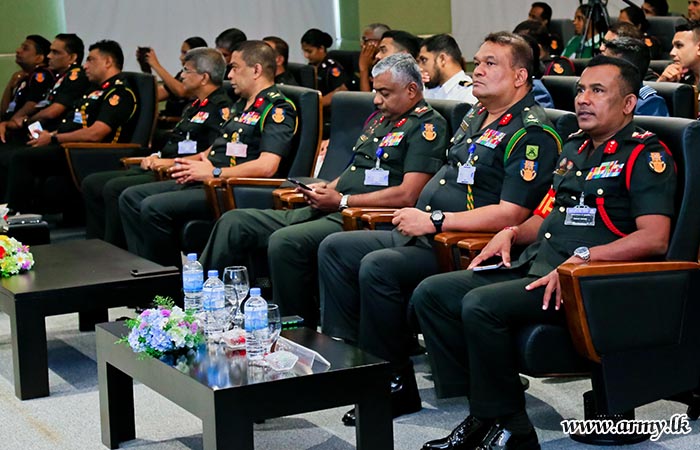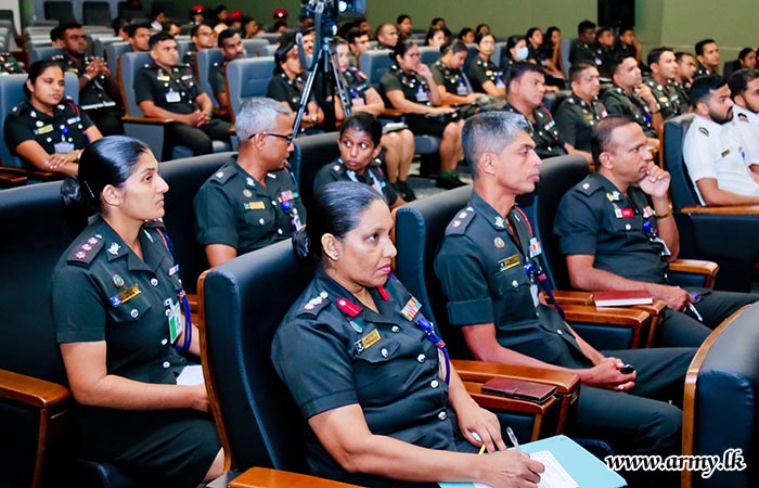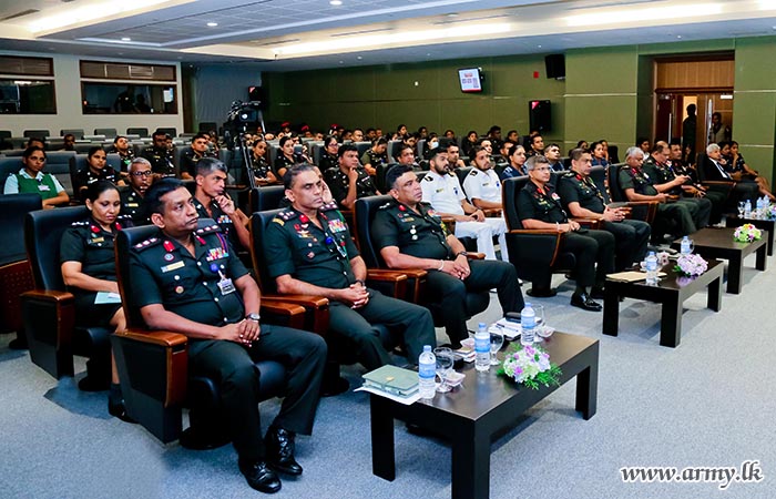 While the lecture session was on, Lieutenant General Vikum Liyanage RWP RSP ndu, Commander of the Army on whose directions the project was launched joined the audience and listened to it. The lecture programme was organised by Colonel N.S Nallapperuma USP ndc, Director, Directorate of Legal.