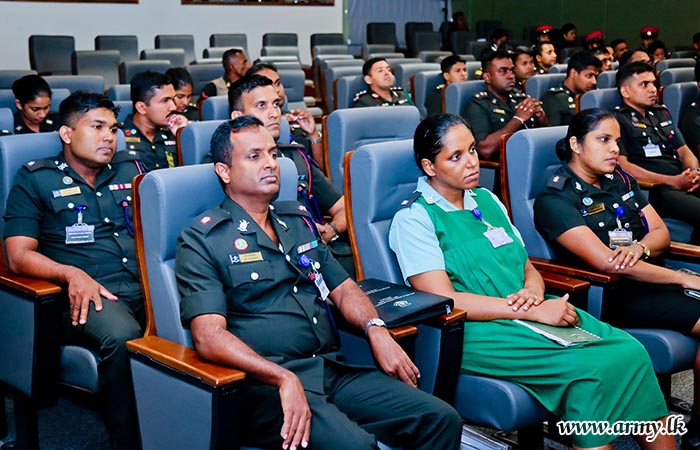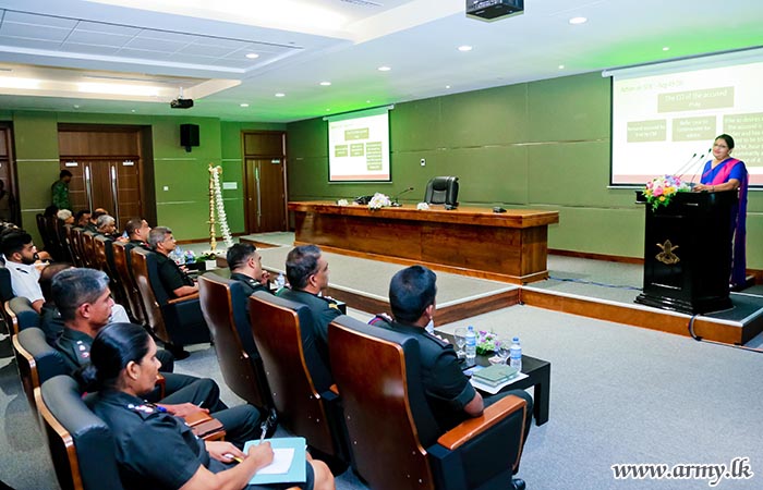 Major General M.A.M Peiris (Rtd) USP, a former Director General at the Directorate of Legal, Army HQ and a former Judge Advocate General delivered the informative lecture on the ‘soldier's disciplinary action procedures and law enforcement’ and explained how those aspects could be further improved.