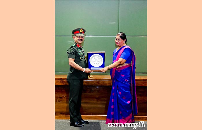 At the end of the session, the Army Chief presented a memento to the guest lecturer.