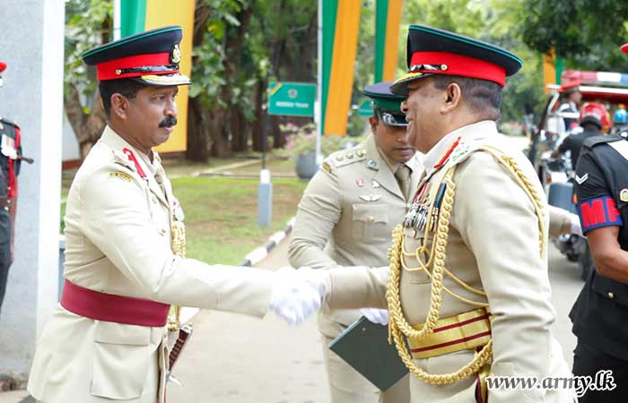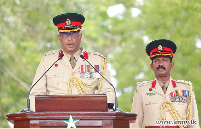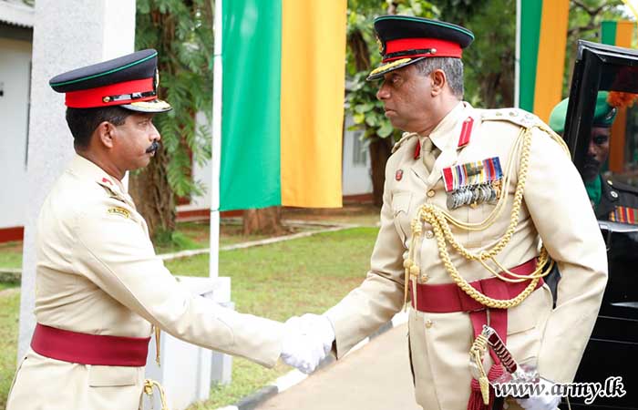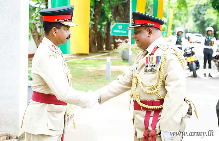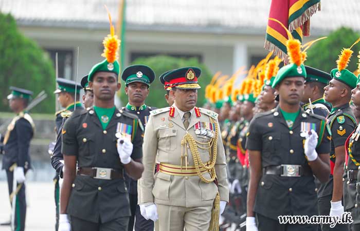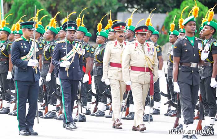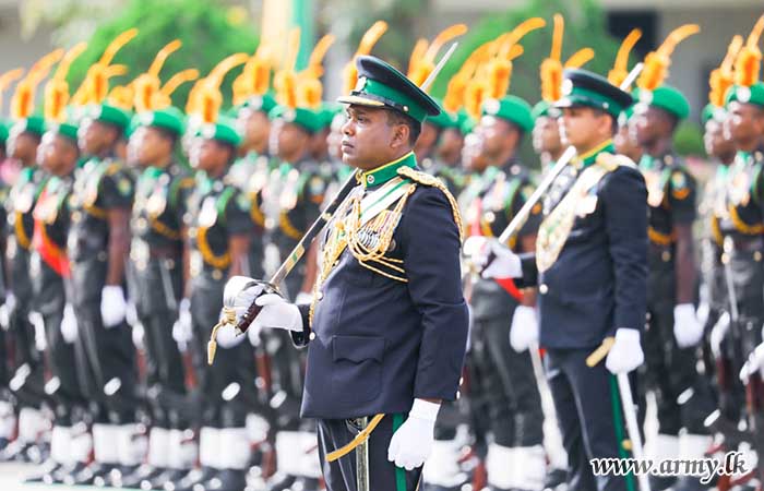 Colonel K.R Kalupahana RSP USP, Deputy Centre Commandant of GR, with several other Senior Officers separately welcomed the Senior Officers on arrival and Brigadier H.T.W Vidyananda RWP RSP USP, Centre Commandant of GR invited them to review the parade with Regimental colours. Afterwards, all three of them received the salute separately from the special dais before three of them addressed the troops at the parade ground.