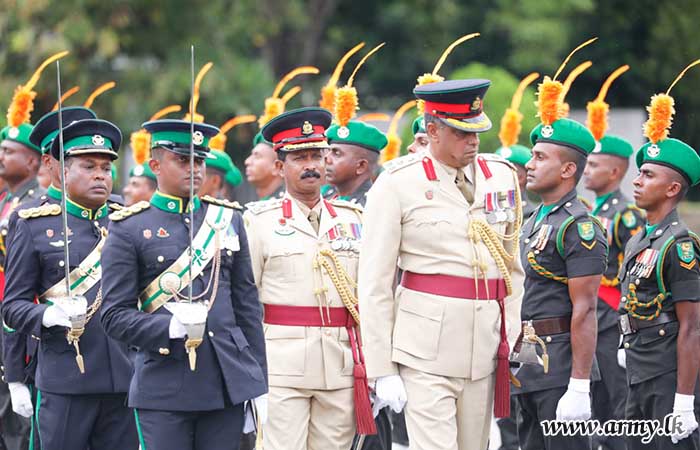 The sequence of events commenced with the ceremonial Guard Turnout, followed by an offering of floral tributes to the statue of late Major General Vijaya Wimalaratne, Founding Father of the Gajaba Regiment.