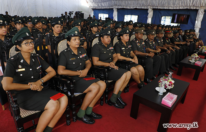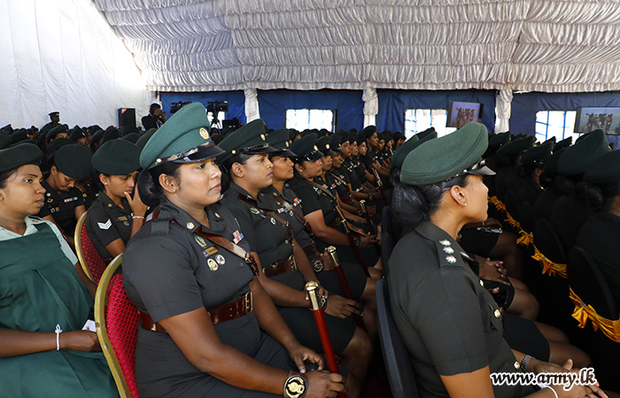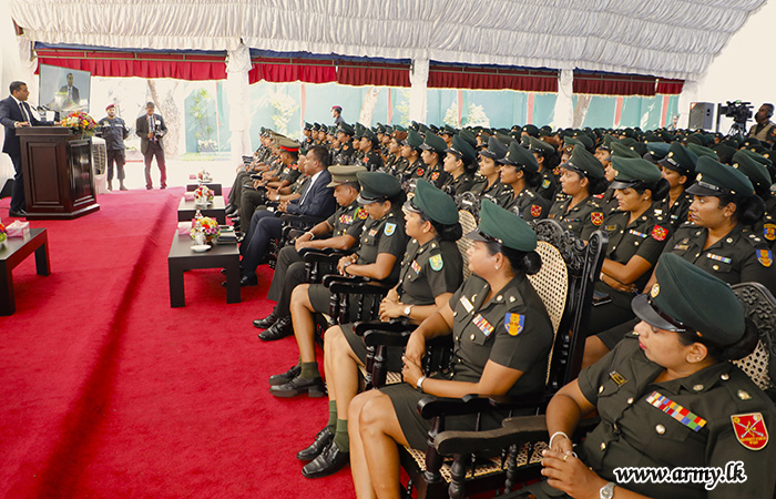 Afterwards, during the course of his speech, he commemorated all fallen heroes and heroines during the humanitarian war before May of 2009 and informed the gathering on important decisions that have been taken, inclusive of extension of retiring age of Lady Officers up to 55 years and award of promotions accordingly on a par with male Officers. He also said female Other Ranks retiring age limit will be lengthened up to 22 years of service while providing vocational training opportunities for ladies in the Army, etc.