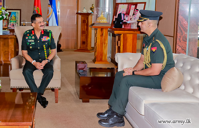 The outgoing Assistant Defence Adviser at the High Commission of India in Sri Lanka Lieutenant Colonel Puneet Sushil on Thursday (30 Nov) extended his courtesies to the Commander of the Army, Lieutenant General Vikum Liyanage RWP RSP ndu at the Army Headquarters before his return to India after completion of his tenure in Sri Lanka.