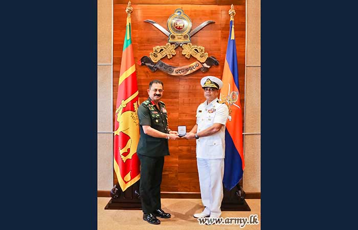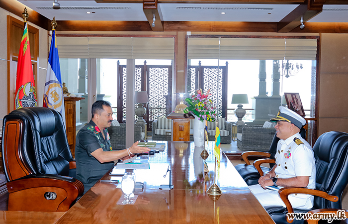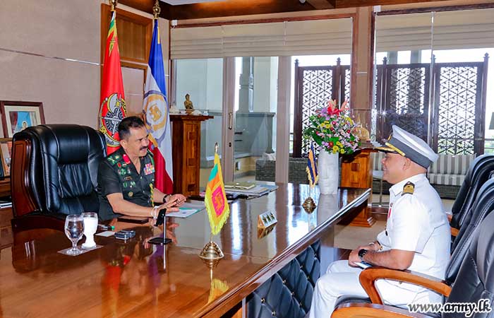 The newly appointed Defence Advisor (DA) for the High Commission of Sri Lanka in New Delhi, Captain Y. I De Silva RWP psc of Sri Lanka Navy paid a courtesy call on the Commander of the Army, Lieutenant General Vikum Liyanage RWP RSP ndu today (24 January) at the Army Headquarters, prior to his departure from the country.
