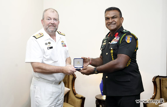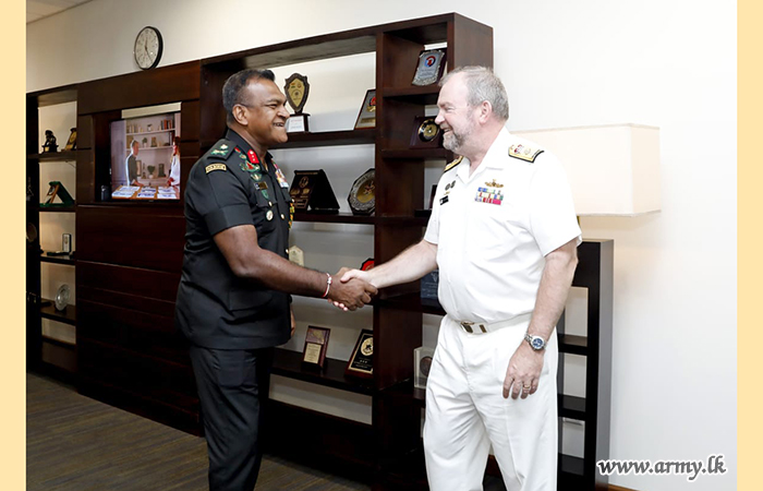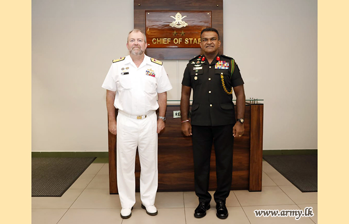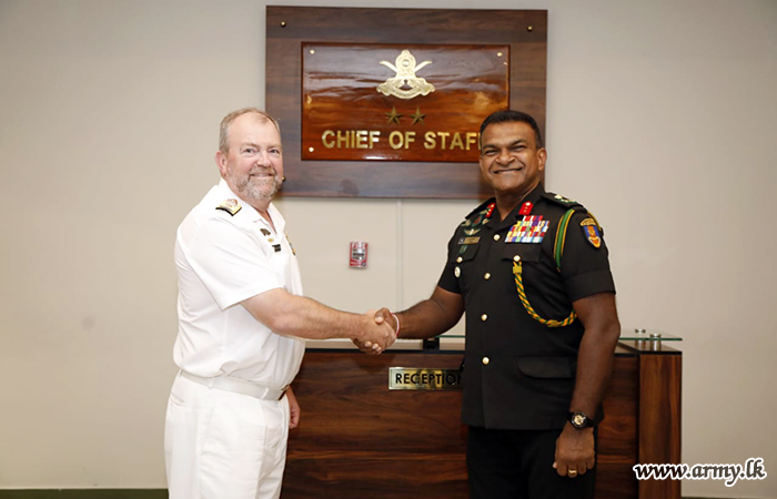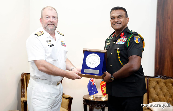 Commodore Michael Harris OAM of Australian Defence Force, the Commander for Indo-Pacific Endeavour (IPE) 2024 extended his courtesies to the Chief of Staff of the Army, Major General W.H.K.S Peiris RWP RSP VSV USP ndu at the Army Headquarters on today (29 Jan).