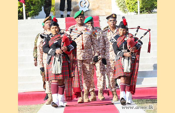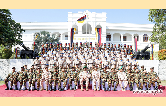 Subsequently, Major General P.A.C Fernando USP, Colonel Commandant, SLAMC and Director General Army Health Services, ushered the chief guest to the parade ground. There, the Parade Commander reported and requested the chief guest to review the ceremonial parade. Afterward, the Army Chief took the salute in accordance with military customs.