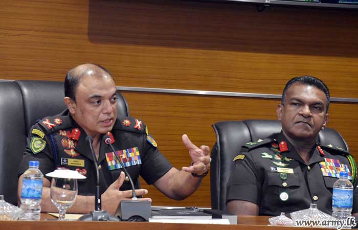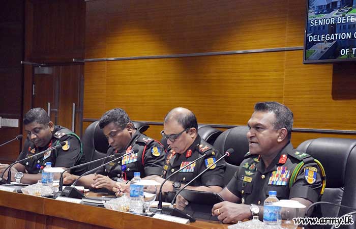 The delegation had a discussion on Sri Lanka’s role in the Indian Ocean region and Indo-Pacific with Major General W.H.K.S Peiris RWP RSP VSV USP ndu, Chief of Staff of the Sri Lanka Army, Major General A.H.L.G. Amarapala RWP RSP ndc psc, the Director General Financial Management and a few Senior Officers at the Army HQ Multifunctional Hall.