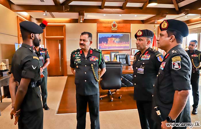 The Commander of the Army inquired about the incident and engaged in a cordial interaction with the brave soldier. At the conclusion of the interaction, the Commander of the Army highly commended Lance Corporal H.A.F Prabath's brave act, extending best wishes for his future endeavours.