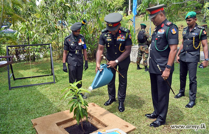 Following the briefing, the Chief of Staff addressed the IPSOTSL troops, emphasizing the importance of maintaining discipline as military personnel. He was then invited to plant a mango sapling to commemorate his visit to the training institute. He also joined a group photograph with the Commandant and IPSOTSL staff.