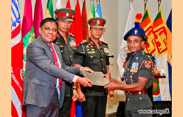 The final certificate-awarding ceremony for personnel who successfully qualified in the internationally recognised National Vocational Qualification (NVQ) Level 4 after completing various technical courses at the Ranaviru Resource Centre (RRC), took place during a simple ceremony this morning (29 Apr) at the Army Headquarters.