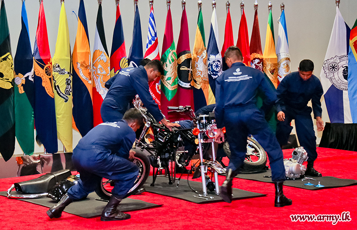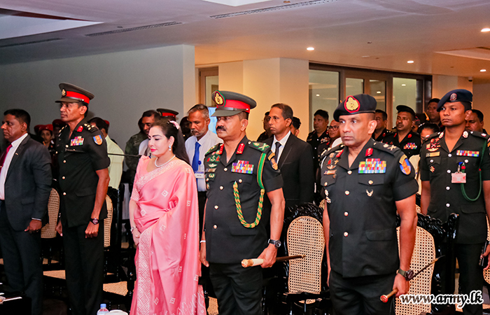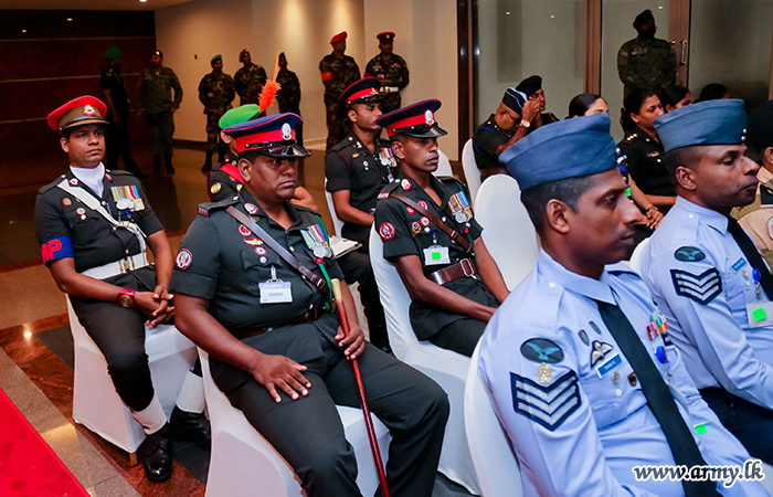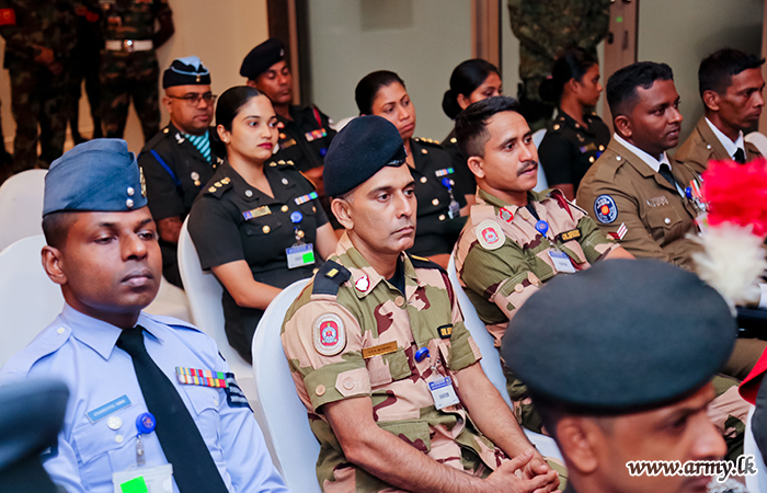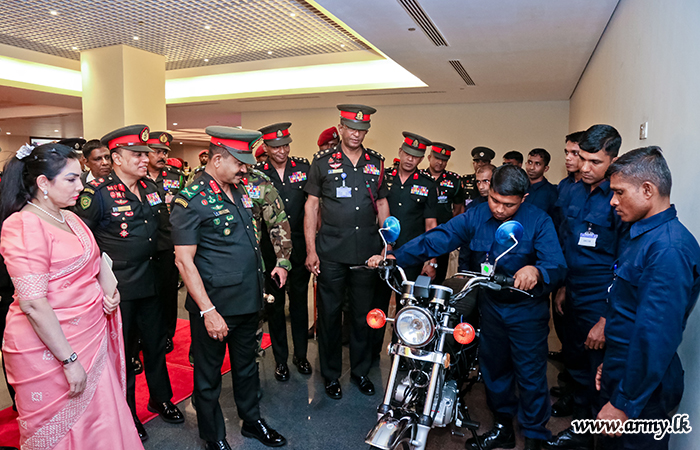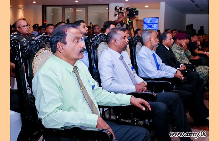 Then, a video clip was displayed showcasing the accomplishments of the Army-run RRC at Hekiththa, including a range of technical courses such as the Carpentry (Building) Course, Electronic Appliances Technician Course, Hair and Beautician Course, Three-wheeler and Motorbike Repairing Course, Computer Hardware Course, Aluminum Fabrication Course, Landscaping Technician Course, and Computer Application Assistant Course for personnel of Tri-Services, Police, and Civil Security Department.