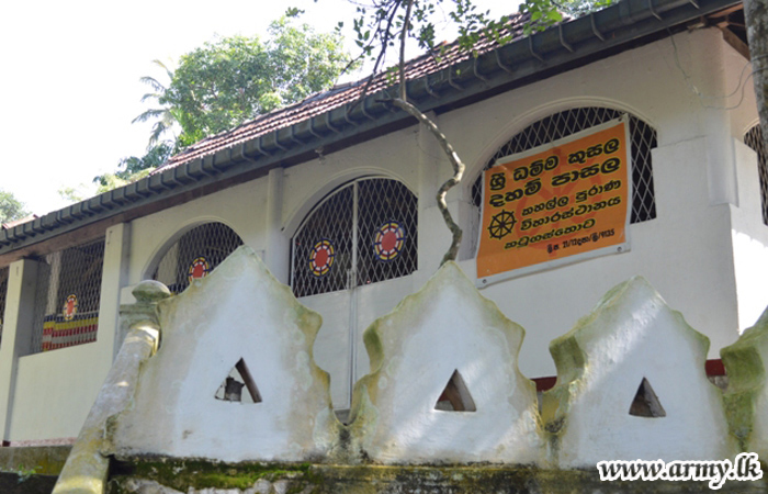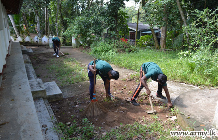 Troops of the 2 Sri Lanka Sinha Regiment and the 2 Sri Lanka Rifle Corps serving under the 111 Brigade Headquarters under Security Force Headquarters-Central (SFHQ-C) conducted a day long ‘Shramada’ campaigns to clean ‘Kahalla Purana Rajamaha Viharaya’ premises and ‘Grohill’ Junior College, situated in their areas of responsibility on Thursday (15).