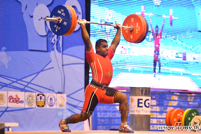 Lance Corporal K.C.A.T.S. Abeykoon of 5 Sri Lanka National Guard (SLNG) made his Regiment and Sri Lanka Army proud when he bagged a Bronze Medal at the Commonwealth Weightlifting Championship-2015, which was held during 10-16 October at Pune, India.