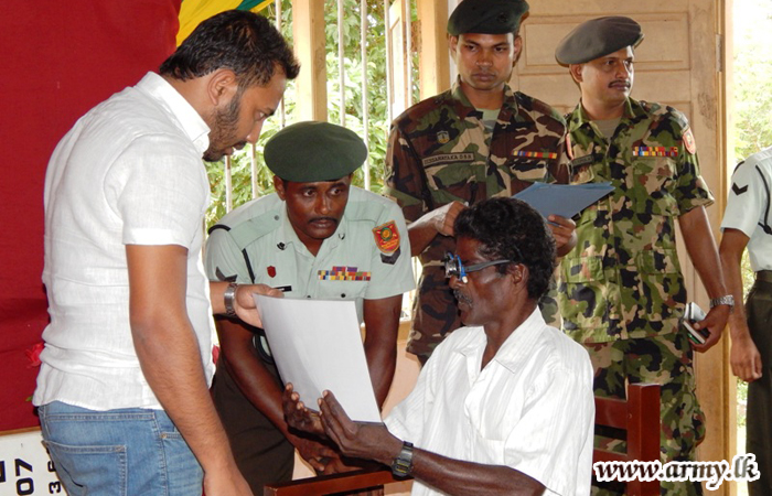 Continuing its welfare projects, the 651 Brigade under the Security Force Headquarters-Kilinochchi (SFHQ-KLN) organized an eye clinic and a donation of free spectacles for the needy people in Vellankulam on 24 October.