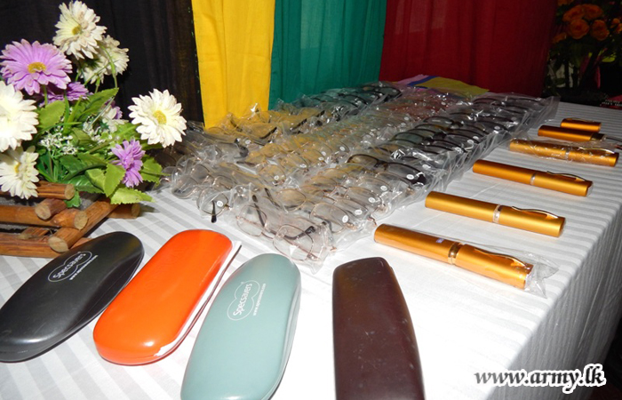 A total of 55 people were benefitted from the donation where they were selected from the eye clinic conducted by Dr. Ishanka Harsha Kumara. In addition 15 Army personnel too received spectacles under this programme.