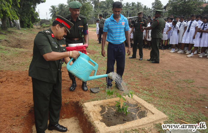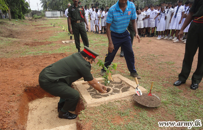 Colonel L. Wijesundara, Commandant, Ranaviru Apparels symbolically planted the first tree sapling at Chandrajothi Maha Vidyalaya, Gampaha, commencing the programme.