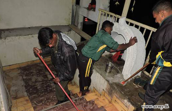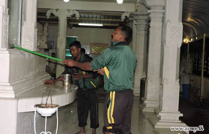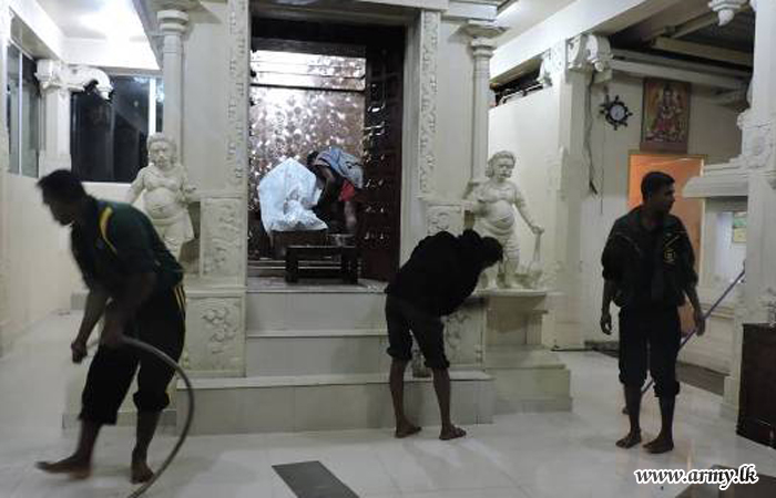 Troops of the 3 (V) Sri Lanka Sinha Regiment (SLSR) of the112 Brigade under the Security Force Headquarters - Central (SFHQ-C) conducted a ‘Shramadana’ campaign on 9 November at Gana Devi Kovil premises in Nuwara Eliya to clean up the Kovil premises. Troops painted the interior of the Kovil before the Deepavali festival.