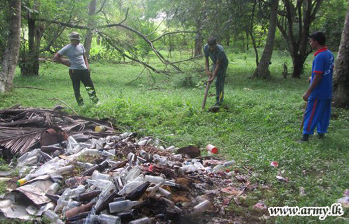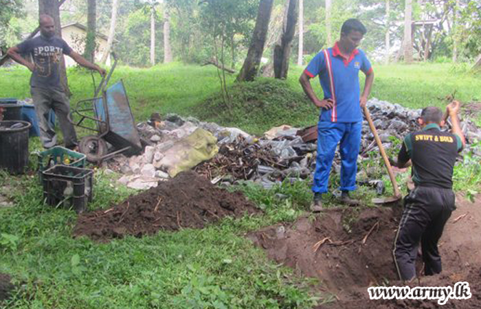 Troops took part in a ‘Shramadana’ campaign to clean the surroundings of the Aryuvedic Hospital in Pallekele under the directions of the General Officer Commanding, 11 Division.