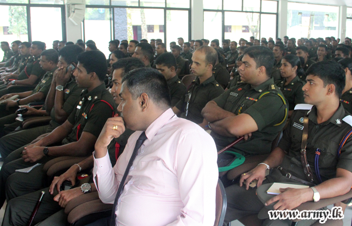 The awareness programme covered sub topics such as Introduction to HIV/ AIDS, How it transmits from infected patient to a healthy person, ‘Symptoms’, ‘Statistics of AIDS infected people’, ‘Social Impact and mental state of victims’ etc. It was organized on the directions of Major General Sudantha Ranasinghe, Commander SFHQ- West at the Signal Corps Regimental Centre auditorium.