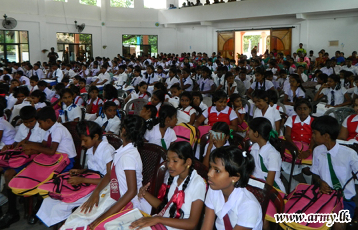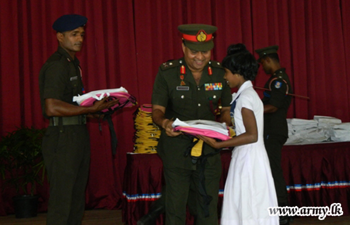 68 Division Headquarters of the Security Force Headquarters - Mullaittivu on Tuesday (15) coordinated the distribution of school accessories and educational items among 300 school students of low-income families, sponsored by Nithyakalyani Jewellers (Pvt) Ltd.