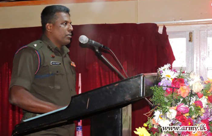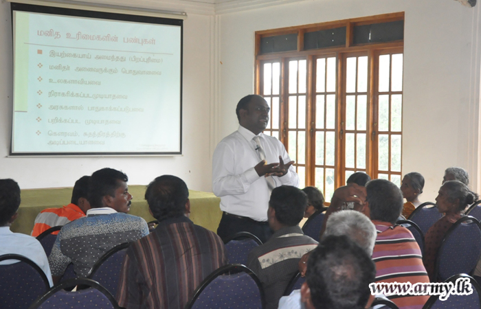 Mr K. Kanakaraja serving in the Human Rights Commission - Jaffna spoke on the theme ‘Our Rights, Our Freedom, Always’ and enlightened the public on their inalienable human rights. Colonel K.T.A.D.S Kolambathanthri, Commander, 571 Brigade, together with several senior officers attended the programme.