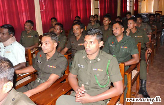 Security Force Headquarters - Mullaittivu (SFHQ-MLT) - organized lecture on the same subject got underway at the SFHQ-MLT auditorium, under the supervision of the Major General P. U. S. Vithanage, Commander, SFHQ-MLT, after an introductory contribution was made by Brigadier N.M Hettiarachchi, Brigadier General Staff at SFHQ-MLT. Lieutenant G.C.P Darmawardene of 6 Sri Lanka Corps of Military Police delivered a special lecture on ‘Introduction to International Humanitarian Law & Military Implications’. More than 150 officers and other rankers were present to listen to the lecture.