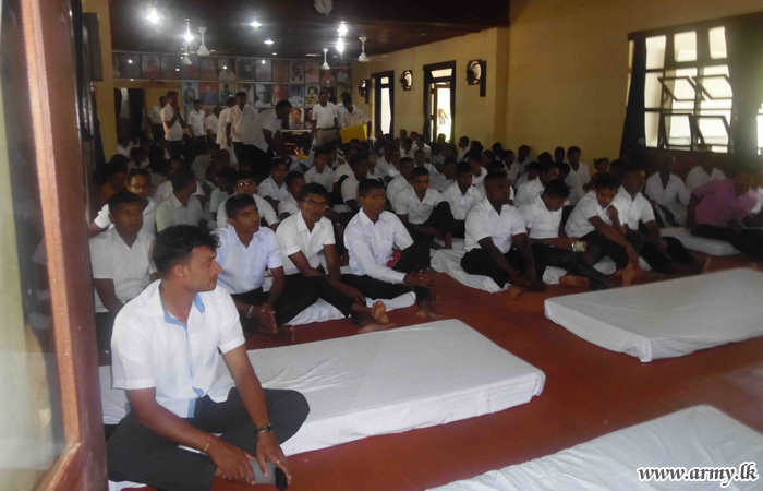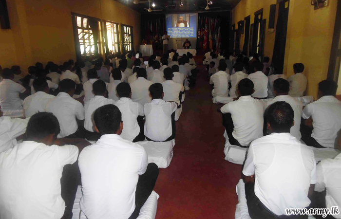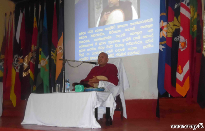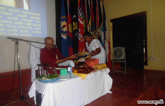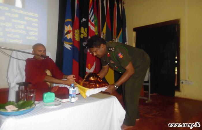 The ‘Budu Bana’ spiritual programme of Ven. Polpithimukalane Pannasiri Tero, chief incumbent of Pothugulwatte Sadaham School and former University lecturer organized by Non Commissioned Officers’ Training School (NCOTS) got underway at the NCOTS main Lecture Hall, Kalaoya on Wednesday (16).
