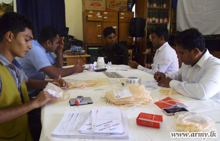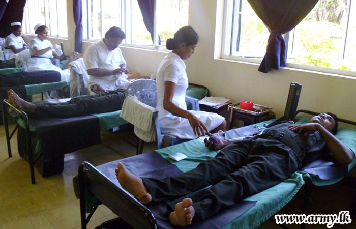Troops of the 12 Division serving under the Security Force Headquarters –Central (SFHQ-C) donated blood during a blood donation campaign organized by Suchi Buddhist Relief Service Foundation at Siribopura, Hambantota on Wednesday (30)