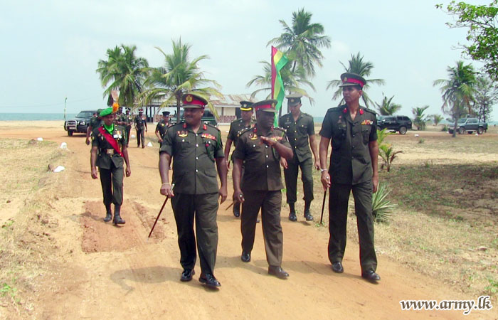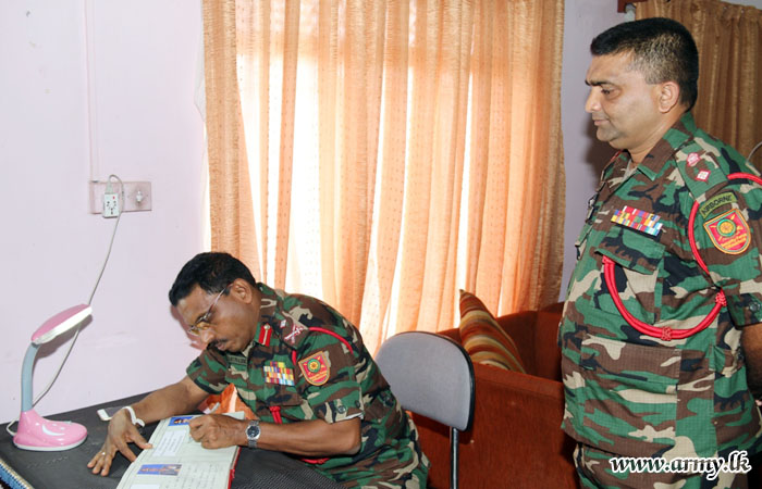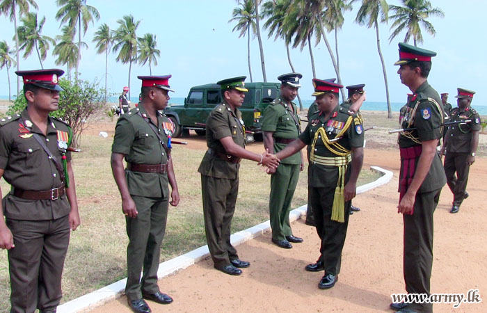 At the same time, Major General Karunasekara visited 9 Vijayabahu Infantry Regiment (VIR) troops where he was welcomed by the Commanding Officer.