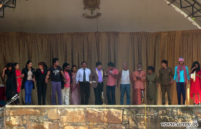Hundreds of service personnel on the directions of Major General Amal Karunasekara, Commander, SFHQ-KLN and Major General P.U.S Vitanage, Commander, SFHQ-MLT enjoyed the educational comedy separately at Kilinochchi and Mullaittivu.